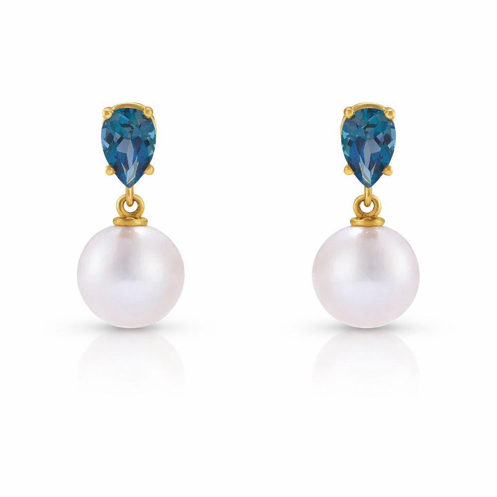 Akoya Pearl Earrings with Natural London Blue Topaz