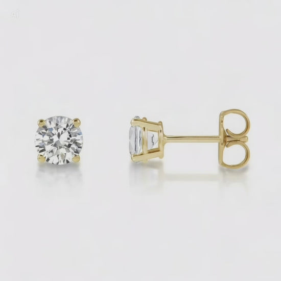 Elevate your everyday look with these round lab-grown diamond stud earrings, crafted in solid 14K yellow gold. Sparkling with a total carat weight of 1 CTW, these timeless studs offer effortless sophistication, perfect for both casual wear and special occasions. A classic jewelry staple, they make a thoughtful gift or a lasting addition to any collection.